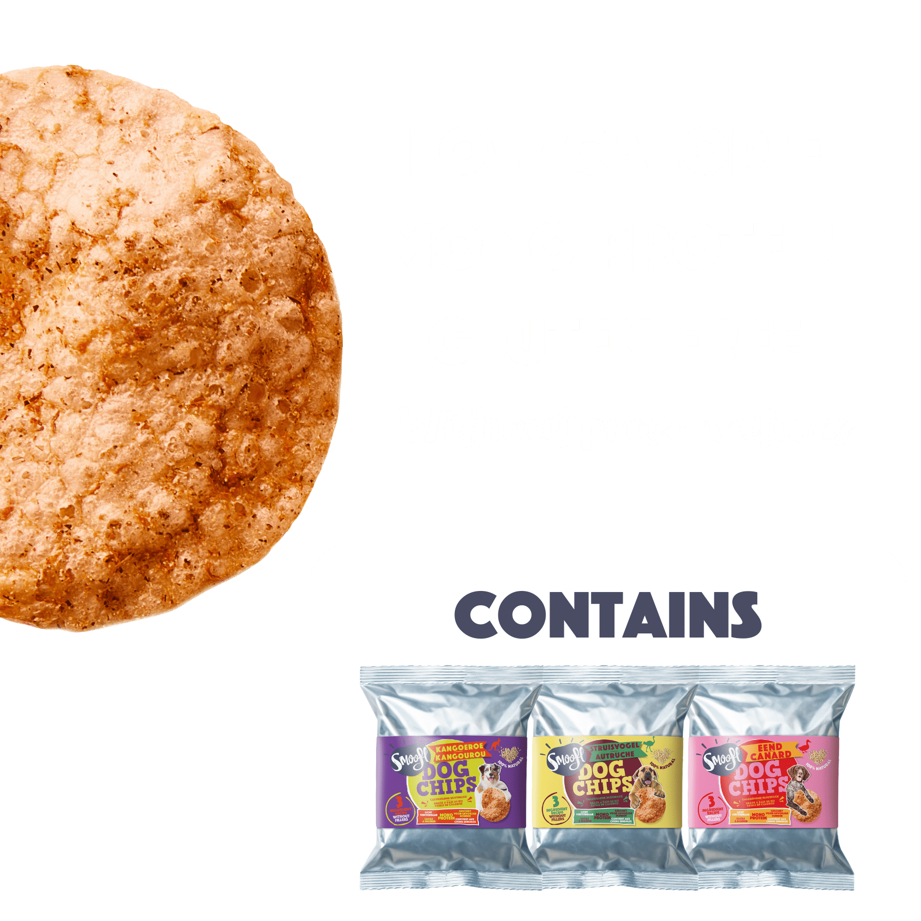 A joyful snack box with three flavours of our crunchy Dog Chips: